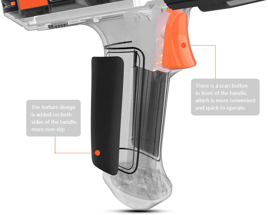 There are 2 scan keys, 1 power key, 1 volume key on the side and 4 custom function keys on the front