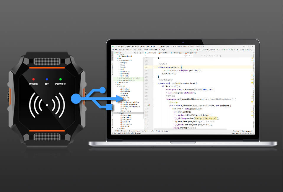 The device supports Bluetooth 5.1 and Type-C data cable transmission, and also supports secondary development in languages such as java, js, and c#