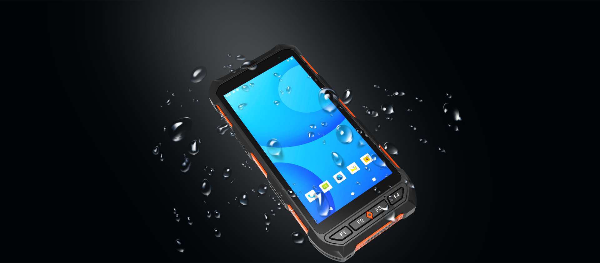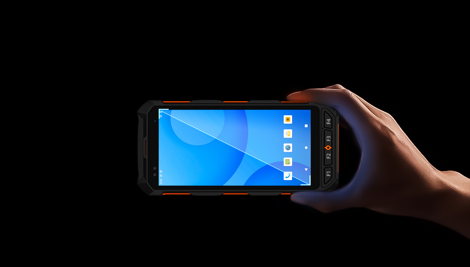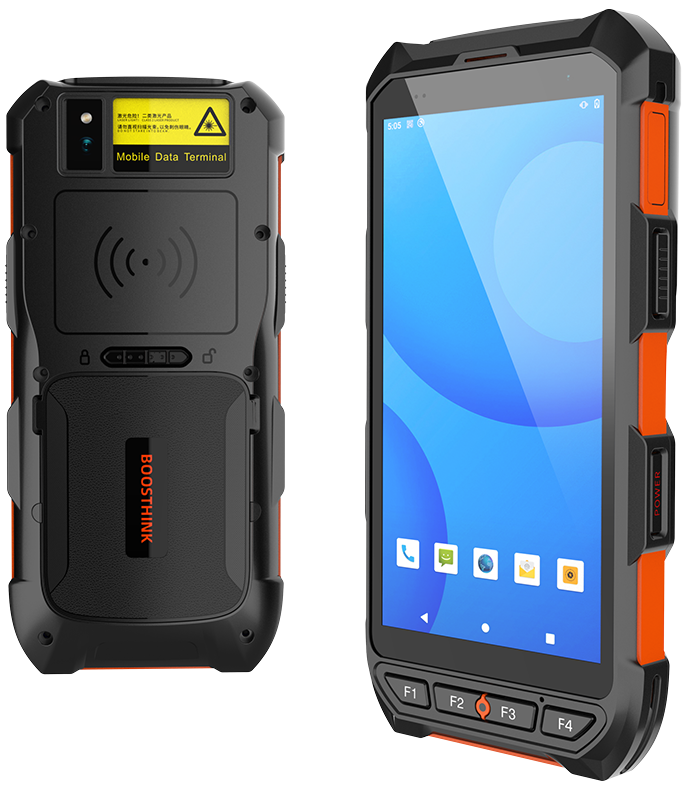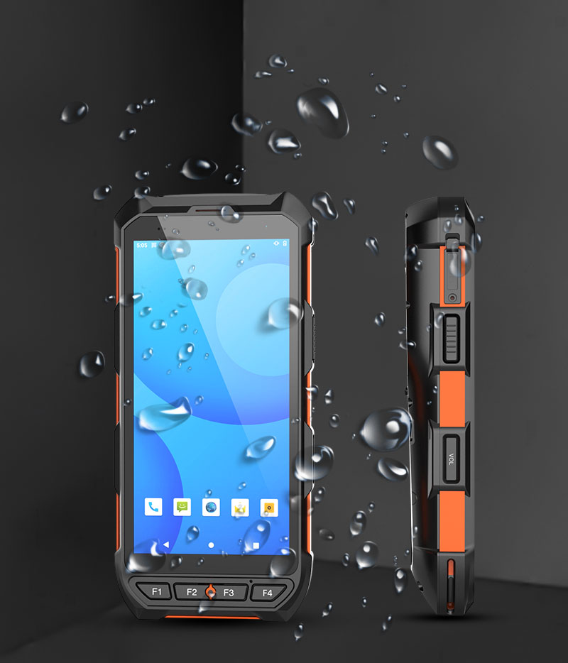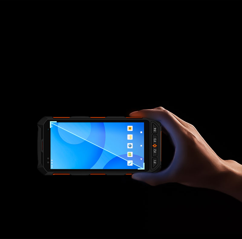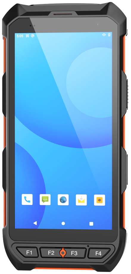 2 scan buttons on the side, 1 power button, 1 volume button, 4 custom physical buttons on the front: F1~F4.