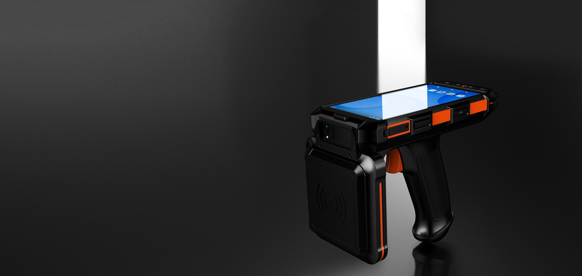There are 2 scan keys, 1 power key, 1 volume key on the side and 4 custom function keys on the front
